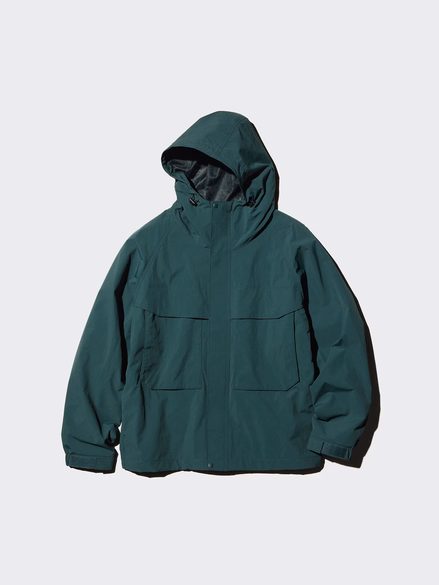 Bahan fungsional dengan lapisan film laminasi tahan angin dan lapisan mesh untuk kenyamanan. Pakaian luar berperforma tinggi untuk kondisi cuaca yang berubah-ubah.